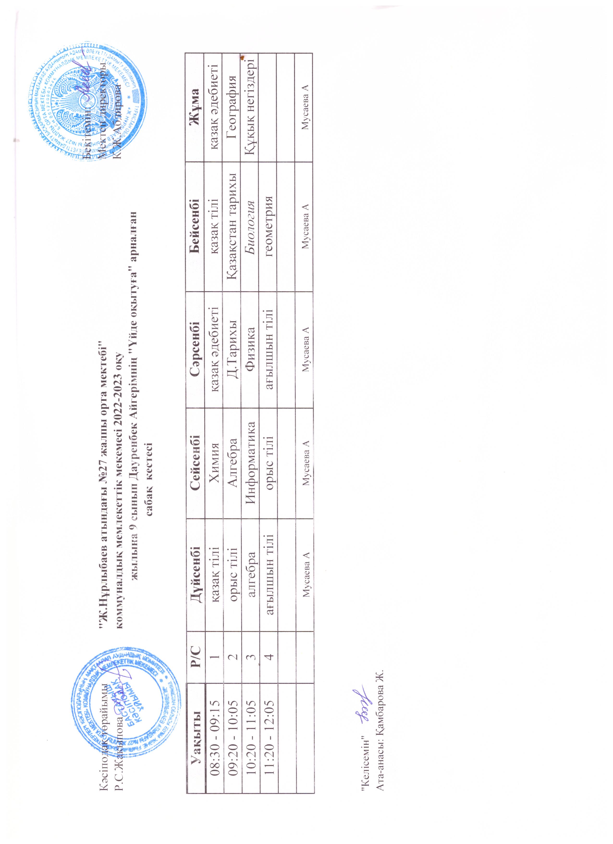 Үйде оқыту сабақ кестесі 2022-2023
